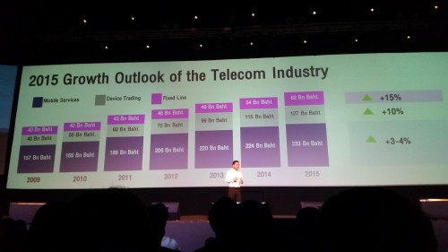 ด้าน นายสมชัย เลิศสุทธิวงค์ ประธานเจ้าหน้าที่บริหาร AIS กล่าวว่า “ภาพรวมของอุตสาหกรรมสื่อสารโทรคมนาคมในปี 2558 นั้น เราคาดการณ์ว่าจะมีการเติบโตโดยรวม แยกเป็น Mobile 3%, Device (smart Phone และอุปกรณ์อื่นๆ) 10% และ Fix Line ราว 15% ที่จะส่งผลให้การใช้งานดาต้าเติบโตอย่างก้าวกระโดด