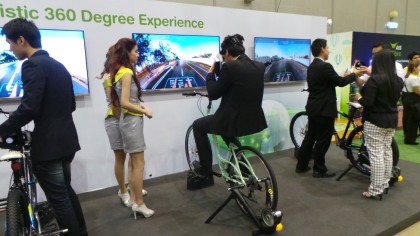 Smart Health” ทดลองใช้งานแว่นตาอัจฉริยะที่ทำให้การออกกำลังกายด้วยการปั่นจักรยานที่บ้านของคุณสนุก ทันสมัย และไม่น่าเบื่ออีกต่อไป เพราะเพียงคุณสวมแว่นตาอัจฉริยะที่เชื่อมต่อกับแอพพลิเคชั่นบนโทรศัพท์มือถือ ก็จะทำให้คุณสามารถชมวิวทิวทัศน์เสมือนการปั่นจักรยานไปในสถานที่ต่างๆ ได้แบบ 360 องศา