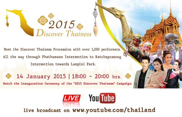งานนี้ทางเว็บไซต์ Youtube Thailand ได้ร่วมถ่ายทอดสดพิธีเปิด ” ขบวนแห่ท่องเที่ยววิถีไทย 2558 “ ไปยังผู้ชม Youtube ทั่วโลกด้วย โดยจะเริ่มถ่ายทอดสด เวลา 18.00-20.00 น ที่ Youtube.com/thailand รายละเอียดงานดูได้ที่เว็บไซต์ www.tourismthailand.org