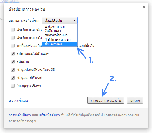 ** หากคุณลบหมดเลย หรือติ๊กเครื่องหมายถูกออกหมด ก็จะส่งผลให้ Chrome ทำงานเร็วขึ้นไปอีก