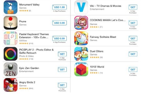 - มีเกมสนุกๆมากมายมาให้โหลดเล่น คัดสรรโดย Apple บวกผู้ใช้ Apple เอง โดยเกมนี้เหมาะสำหรับคุณแม่ทุกๆคน และเล่นกับลูกๆได้ แอพที่น่าสนใจ โหลดฟรีในหมวดนี้ได้แก่ Zen ซึ่งเป็นกราฟฟิคเกี่ยวกับต้นไม้ดูสบายตา และเกม Duel Otters ที่สามารถเล่นเกมนี้ได้ฟรี โดยไม่ต้องกังวลเรื่องจ่ายเงินแบบ In-App Purchases