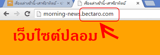 ช่วงนี้มีข่าวเกี่ยวกับเพจ facebook ปลอมแล้ว ยังมีข่าวเว็บปลอมด้วย โดยล่าสุดเมื่อช่วงค่ำวันที่ 24 มิถุนายนที่ผ่านมา มีรายงานพบเว็บไซต์ปลอมที่ผู้ไม่หวังดีสร้างขึ้นโดยหน้าตาเว็บไซต์ปลอมนั้น เลียนแบบคล้ายเว็บไซต์ของรายการ เรื่องเล่าเช้านี้ – เรื่องเล่าเสาร์-อาทิตย์