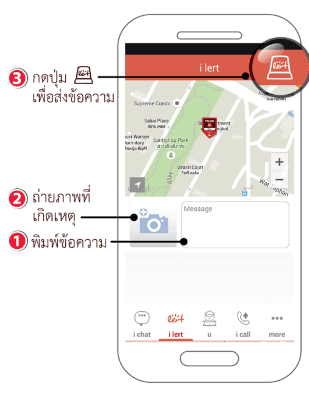 ให้เปิดแอพ Police i lert u แล้วเลือกแถบเมนูด้านล่างที่ i lert จากนั้น ถ่ายรูปที่เกิดเหตุไว้ และพิมพ์รายละเอียดเหตุการณ์แจ้งเบาะแสต่างๆถึงตำรวจ และระบุพิกัดที่เกิดเหตุ (ต้องเปิด GPS ด้วย) เสร็จแล้วก็แตะที่ปุ่ม lert ที่มุมขวาบนของหน้าจอ ข้อมูลทั้งหมดทั้งพิกัดแผนที่เกิดเหตุ รูปภาพเหตุการณ์ และข้อความเบาะแสต่างๆจะส่งถึงตำรวจทันที ผ่านทางเครือข่ายอินเทอร์เน็ต , 3G , 4G