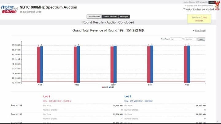 สรุปการประมูลคลื่น 900 MHz ( 15 ธันวาคม – 19 ธันวาคม )