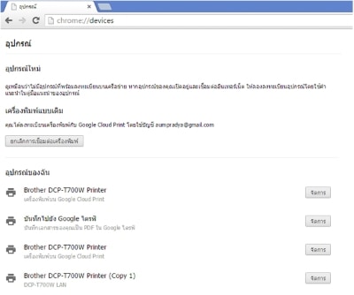 เมื่อเข้าเว็บไซต์ google.com/cloudprint แล้ว sign in ด้วยบัญชี google ก็จะพบปริ้นเตอร์ brother แบบนี้แค่นี้จะอยู่ที่ไหนของโลกก็สั่งให้ปริ้นเตอร์ brother รุ่นนี้ ปริ้นงานออกมาได้