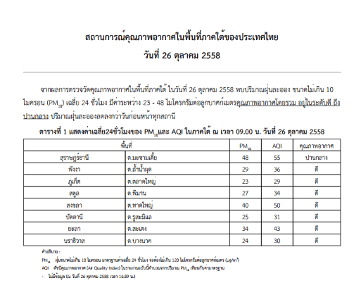 นอกจากจะรายงานสถาพมลพิษทางอากาศแล้วยังมี หน้า สถานการณ์หมอกควัน ซึ่งเมื่อคลิกแล้วจะเป็น ประกาศสรุปสถานการณ์หมอกควันในไทยด้วย