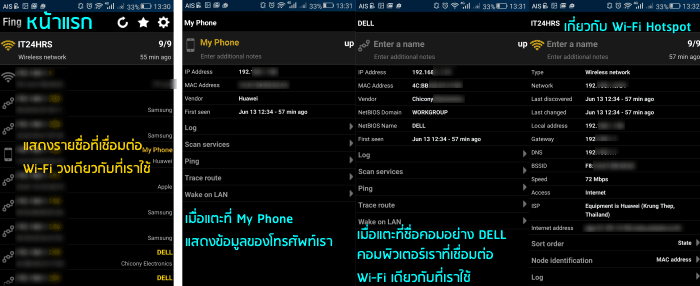 คราวนี้ตรวจได้เลยว่ามีชื่อรุ่นไหนที่ไม่คุ้นแอบใช้ Wi-Fi ของเราหรือเปล่า วิธีนี้ใช้ได้ทั้ง Android และ iOS ลองใช้กันดูได้