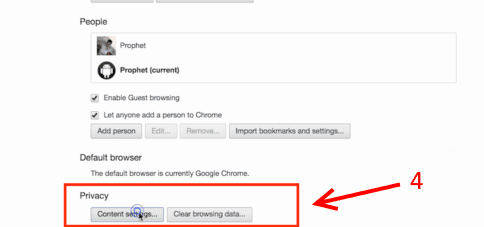 แล้วลองดูบริเวณ “Privacy” ให่คลิกที่ Content settings.