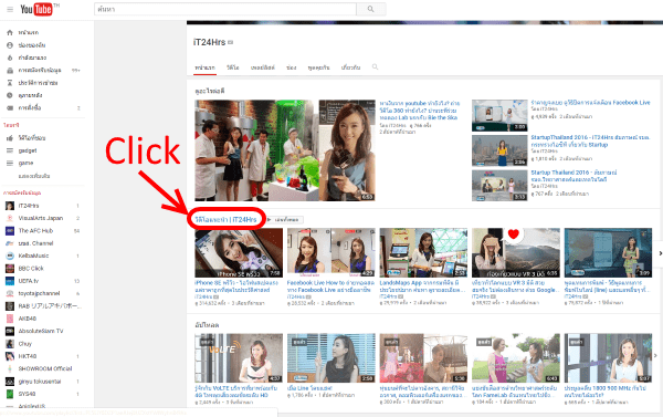 เริ่มจากเข้าเว็บไซต์ youtube.com แล้วคลิกเลือก Playlist ที่คุณอยากดาวน์โหลด ในตัวอย่างนี้จะเลือก Playlist วีดีโอแนะนำ | IT24HRS ดู