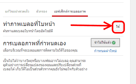 แต่ถ้าหากต้องการเบลอใบหน้าเฉยๆ ซึ่งฟีเจอร์นี้ใช้ได้ตั้งแต่ปี 2012 แล้ว สามารถทำได้โดยคลิกที่ปุ่ม ใช้ ดังรูป