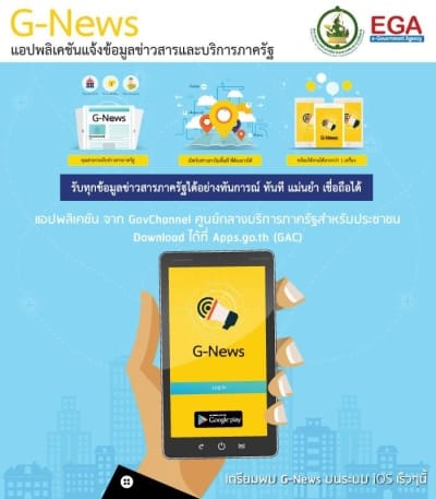 และมีแอพล่าสุดคือแอพ G-NEWS แอพข่าวสารภาครัฐติดตามได้ง่ายๆ จากปลายนิ้วบนโทรศัพท์มือถือ ซึ่งในระยะแรกจะเป็นแอพข่าวสารสาธารณะจากหน่วยงานภาครัฐ เพื่อป้องกันข่าวหลอกลวงที่แชร์ผ่านทาง Social Network แต่เฟสต่อมาแอพนี้จะเป็นการแจ้งเตือนส่วนตัวเช่น ใบขับขี่ของเราหมดอายุ , บัตรอื่นๆหมดอายุเมื่อไหร่ , ข่าวสารจากจังหวัดต่างๆที่เรายืนอยู่ เน้นความต้องการของคุณเป็นหลัก
