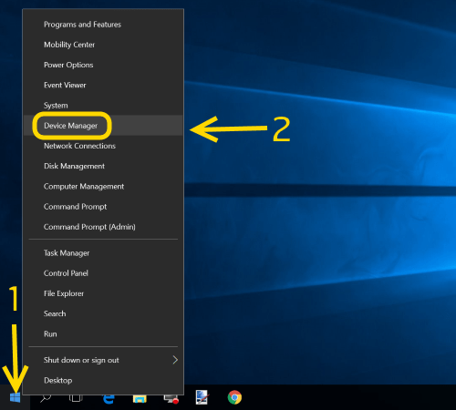เริ่มจาก คลิกขวา!!! ที่ปุ่ม Start บนหน้าจอ Desktop ของ Windows 10 หรือกดปุ่ม Windows + X >> จากนั้นเลือก Device Manager