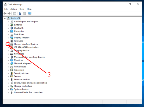จากนั้นคลิกซ้ายที่ลูกศรของ Human Interface Device ดังรูปเพื่อแสดงรายการย่อยออกมา