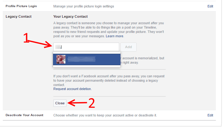 ต่อมาใส่ชื่อ facebook ญาติ ผู้ปกครอง ของเรา หรือใส่ชื่อบัญชี facebook เพื่อนสนิทที่ไว้ใจที่นี่ แค่นี้ก็เรียบร้อย ได้ผู้ดูแลบัญชีของเราต่อแล้ว