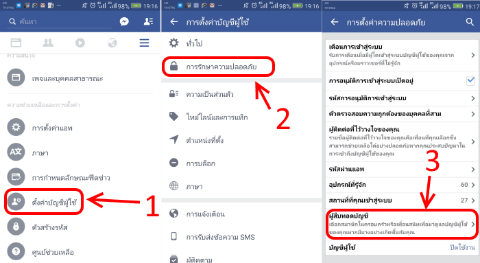 เข้าแอป facebook แล้วเลือกเมนูด้านซ้าย เลือก ตั้งค่าบัญชีผู้ใช้ >> เลือก การรักษาความปลอดภัย >> แล้วเลือกที่ ผู้สืบทอดบัญชี