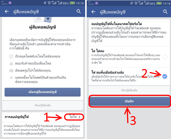 วิธีตั้งค่าสร้างพินัยกรรม Facebook ด้วย Legacy Contact ผ่านทางแอป Facebook