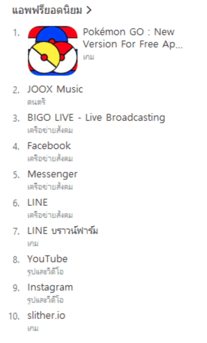 ตอนนี้ Pokémon Go ก็อยู่ในระหว่างทยอยเปิด server และเปิดออนไลน์เกมเรื่อยๆ ซึ่งแน่นอนมี Server ประเทศไทยเรียบร้อย อยู่ในระหว่างเตรียมความพร้อมในการเปิดออนไลน์ ซึ่งญี่ปุ่นก็เริ่มเกม Pokémon Go! เรียบร้อยแล้ว แต่ใครใช้ iOS ลองสังเกตชาร์ตอันดับแอปโหลดยอดนิยมบน App store หน่อย ปรากฏว่ามีแอป Pokémon Go ขึ้นอันดับ 1 ในชาร์ต App Store ไทยและอินโดนีเซีย แต่แอปนั้นเป็นแอปปลอม ซึ่งตัวเกมไม่ได้พัฒนาโดย Niantic, Inc. ด้วย