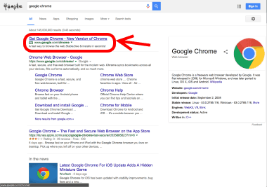 โดยนักวิจัยพบจากการ Search บน Google พิมพ์คำว่า “Google Chrome” เพื่อดาวน์โหลด Chrome พบลิงค์โฆษณา Adwords ดาวน์โหลด Google Chrome