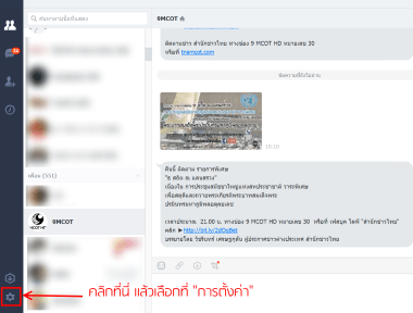 จากนั้น Login ด้วยบัญชี LINE ของตัวเอง เมื่อ Login สำเร็จแล้วก็คลิกที่ไอคอนฟันเฟืองดังรูป แล้วเลือกเมนู การตั้งค่า