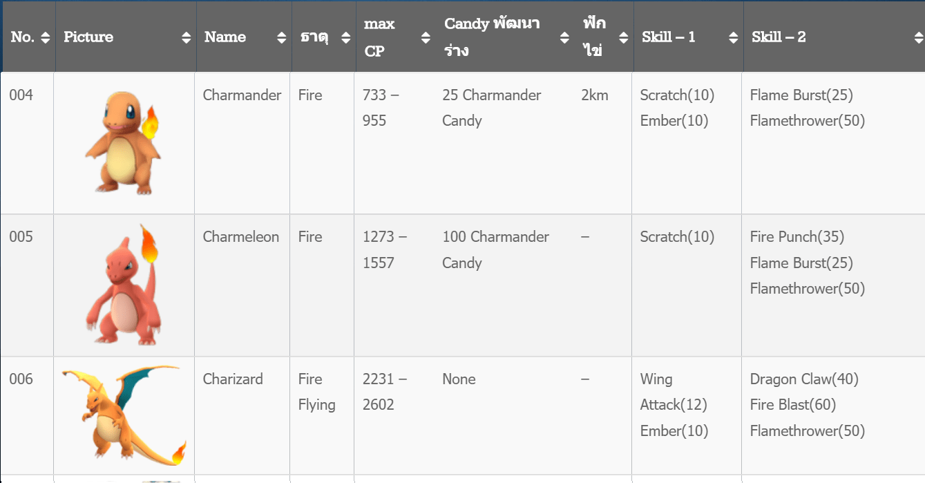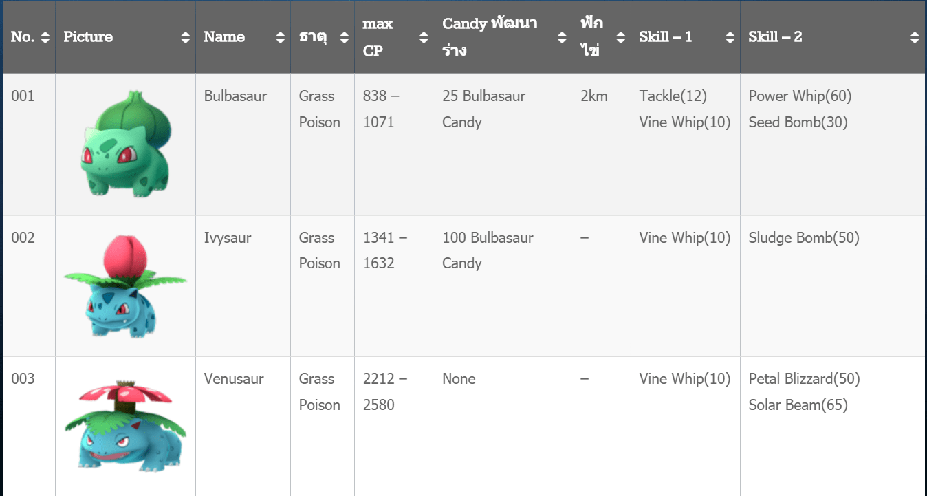 ซึ่งจากข้อมูลนี้ เราได้จับตารางการพัฒนาร่างสำหรับผู้เล่นโปเกม่อน โก ( Pokemon GO ) ไว้แล้วตามรูปด้านบนนี้