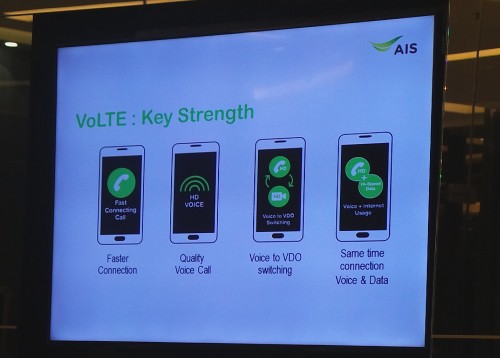 พร้อมกับนี้ AIS ประกาศให้บริการโทรด้วยเสียงบนเครือข่าย 4G หรือ VoLTE (Voice over LTE) บนเครือข่าย AIS 4G ซึ่งมีคุณสมบัติให้เสียงคมชัดยิ่งขึ้นระดับ Full HD, เสียงรบกวนต่ำ, ใช้เวลาเชื่อมต่อคู่สายขณะโทรออกเร็วขึ้นกว่าเดิม รองรับ voice to video