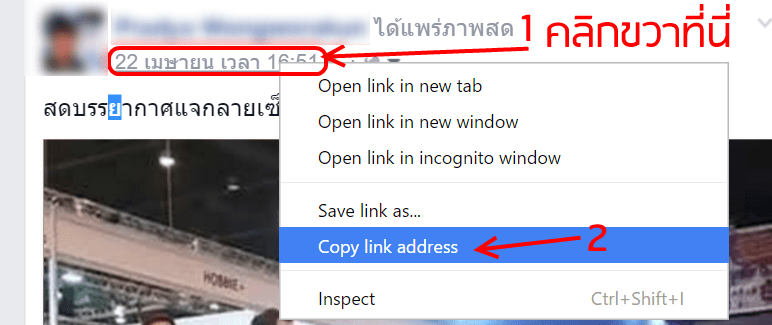 เริ่มจากหาคลิป facebook live แบบย้อนหลัง ที่เราชอบอยากโหลดเก็บไว้หาให้เจอก่อน ถ้าเจอแล้ว ให้คลิกขวาตรงช่วงเวลาที่โพสต์วีดีโอนั้น แล้วเลือก copy link address หรือ คลิกที่ปุ่ม Play เล่นวีดีโอคลิปนั้นไว้ก่อน แล้วคลิกขวา เลือก show video url แล้วทำการ copy link ที่ปรากฎในวีดีโอ
