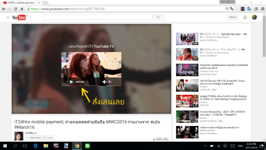 คราวนี้คุณลองเลือกวีดีโอที่ต้องการ แล้วคลิกปุ่มเล่นเลย กลางจอนี้