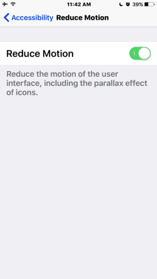 การเปิด Reduce Motion นี้เพื่อ ให้ไอคอนและภาพ Wallpaper จะไม่แยก Layer ซึ่งการแยก Layer ออกจากการโดยไม่ได้เปิด Reduce Motion เป็นสาเหตุที่ทำให้เครื่องทำงานหนักและกินแบตเตอรี่ของอุปกรณ์ด้วย วิธีการตั้งค่าคือ เข้าไปที่แอป Setting >> Accessibility >> Reduce Motion >> เลือกให้เป็น ON