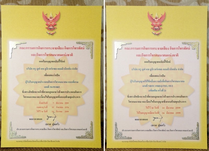 รับใบอนุญาตให้ใช้คลื่นความถี่ 900 MHz จาก กสทช.