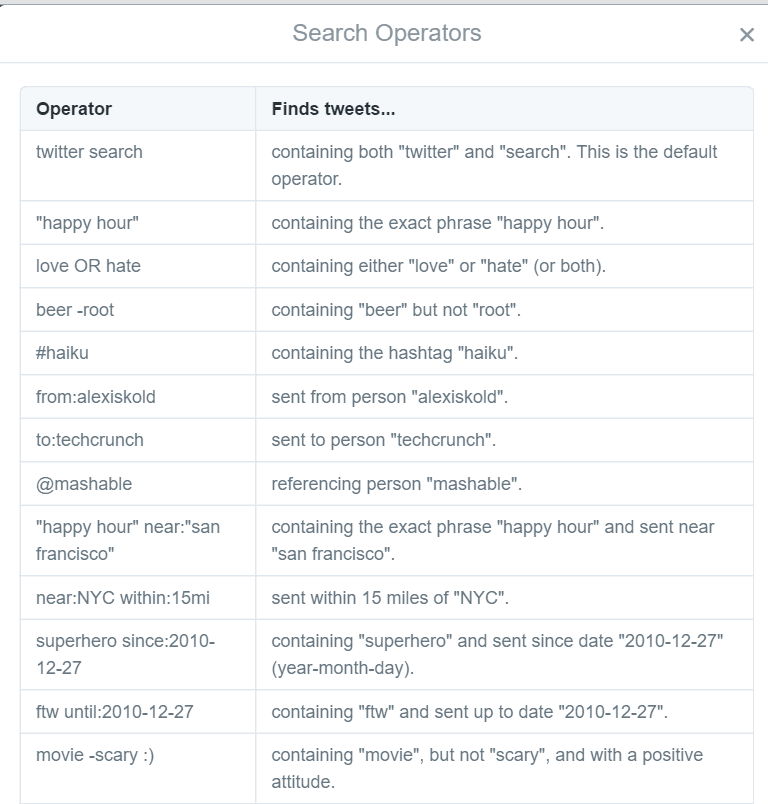 ใครที่ไม่เคยใช้ twitter search ในการค้นหาข้อความทวีตบนเว็บไซต์ twitter ละก็ ลองนำวิธีนี้ไปใช้ดู และลองศึกษารูปแบบคำสั่งการค้นหาจากหน้า operators มาใช้ในการ search บน twitter ทั้งผ่านทางเว็บไซต์ และผ่านทางแอป twitter บนสมาร์ทโฟนและแท็บเล็ต
