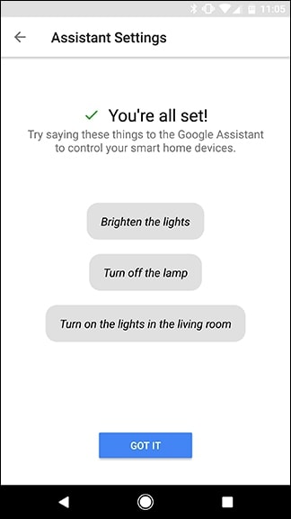 เมื่อตั้งค่าการเพิ่มอุปกรณ์สมาร์ทโฮมเข้ากับตัว Google Assistant ได้รู้จักแล้ว คุณสามารถทดสอบสั่งงานกับ Google Assistants โดยพูด ok google แล้วพูดคำสั่งเป็นภาษาอังกฤษได้เลย หรือจะแชท เป็นภาษาอังกฤษสั่งงานก็ได้เพื่อทดสอบว่า เมื่อสั่งผ่าน Google Assistant แล้ว อุปกรณ์สมาร์ทโฮมที่เราเพิ่มไปนั้นจะทำงานหรือไม่ เป็นการเสร็จสิ้นการติดตั้ง