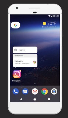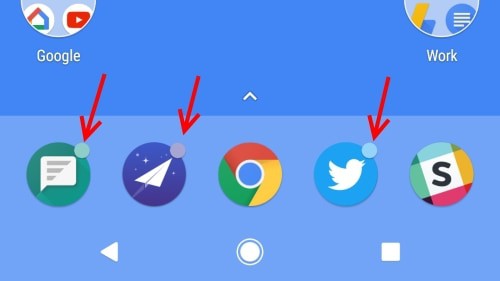 Notification Dots ไอคอนแอประบบการแจ้งเตือนแบบใหม่ โดยไอคอนแอปตามลูกศรชี้ จะมีการแจ้งเตือนด้วย