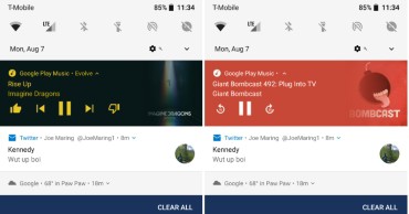 Notification แจ้งเตือนแบบใหม่สีเทา ขณะเลื่อนจากด้านลงลงมาเพื่อดูแจ้งเตือน ไอคอนแอปที่เคยแสดงจะอยู่ส่วนล่างของหน้า Notification ด้วย