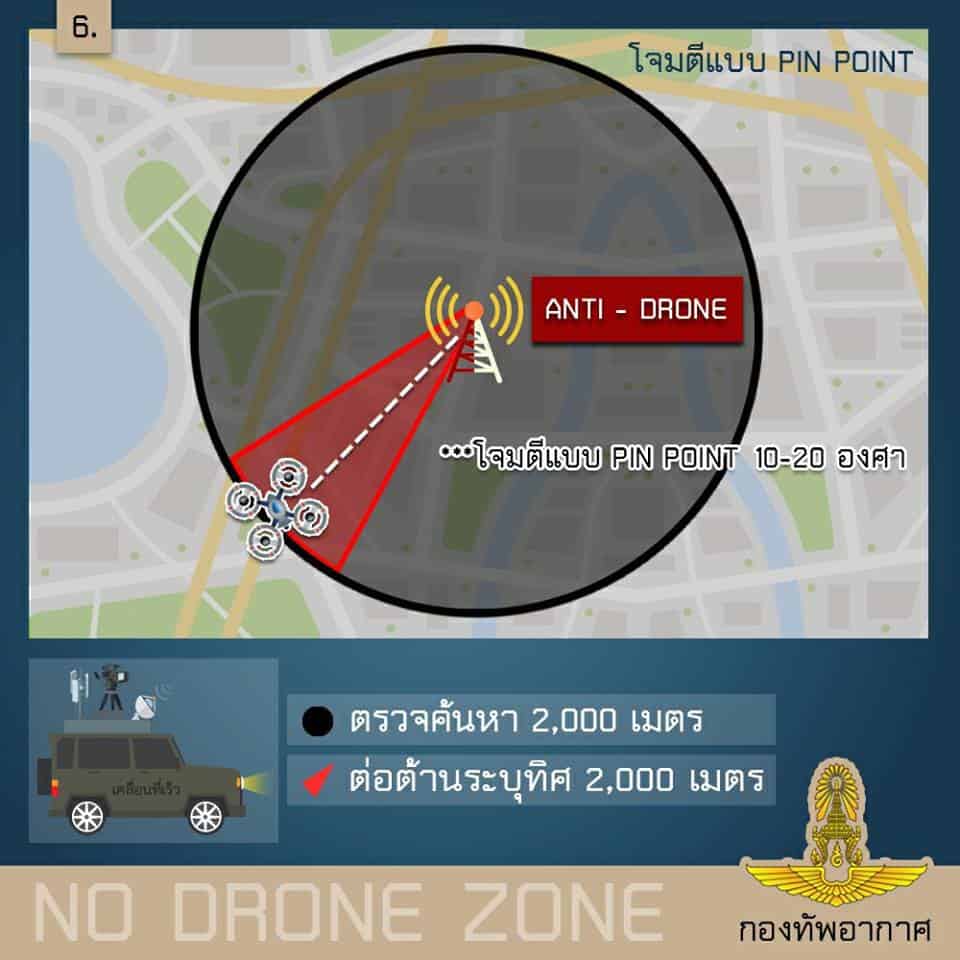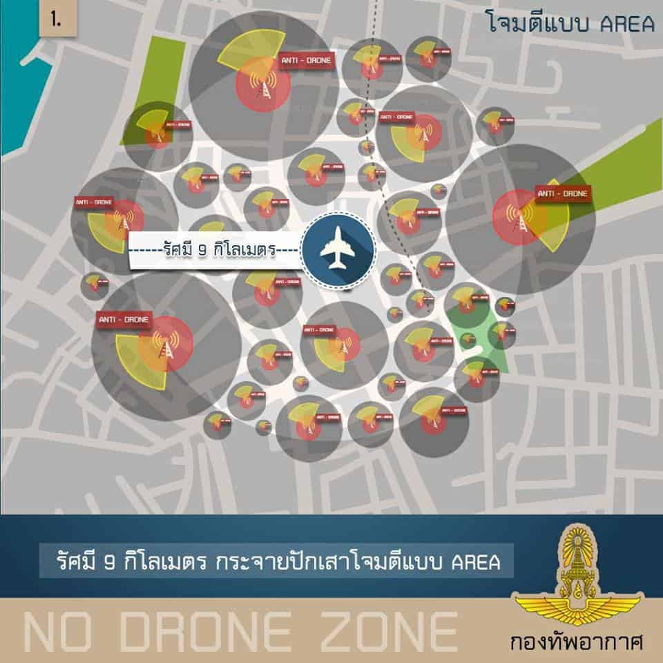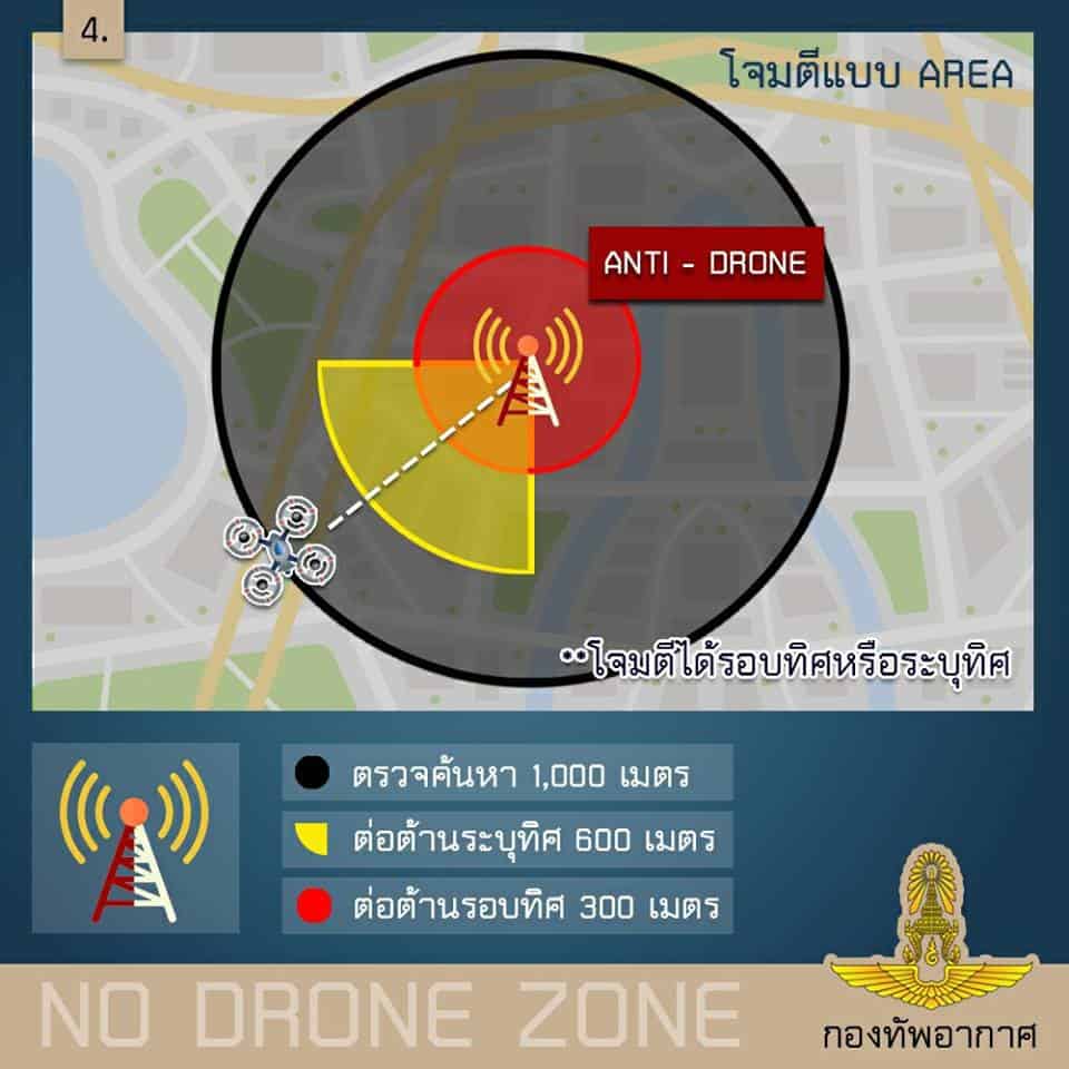อากาศยานไร้คนขับหรือโดรน เริ่มมีคนซื้อใช้บินเล่นกันแล้ว แต่บางท่านอาจใช้โดรนบินสูงเกินที่กำหนด แล้วบินใกล้เขตห้ามบินอย่างสนามบิน ค่ายทหาย และบริเวณในตัวเมืองที่มีคนหนาแน่น ซึ่งทางกองทัพอากาศไทย ได้โพสต์เตือนถึงผู้ใช้โดรนที่ปล่อยบินในเขตห้ามบิน อาจเตรียมยึดหรือหยุดโดรนด้วยระบบ Anti Drone เพื่อไม่ให้กระทบต่อเส้นทางการบินทางอากาศของเครื่องบิน