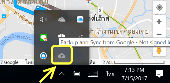 เมื่อติดตั้งแล้ว ให้รันแอป Backup and Sync from Google หรือคลิกที่ไอคอนนี้ในกลุ่ม taskbar ดังรูป