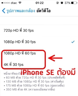แต่ถ้าเปิด iPhone SE แล้วไม่พบ 1080P HD 60 fps และ 4K 30 fps ตามขั้นตอนข้างต้น แสดงว่าคุณใช้ iPhone SE แต่ใส้ในเป็น iPhone 5S ซะแล้ว