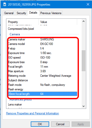 เรียกได้ว่าหากคุณถ่ายด้วยกล้องถ่ายรูป หรือกล้องมือถือผ่านโหมด Camera ข้อมูลเกี่ยวกับรูปแบบการปรับแต่งภาพต่างๆตอน shutter เสร็จนี้ก็จะอยู่ในส่วน detail ของไฟล์นี้หมด ซึ่งข้อมูลนี้เป็นข้อมูสสำคัญสำหรับการแลกเปลี่ยนเทคนิคการถ่ายรูปให้สวยงามได้ แต่ในบางครั้งข้อมูลเหล่านี้ก็เป็นหลักฐานสำคัญว่าภาพที่ว่านี้เป็นภาพจริงหรือภาพที่สร้างด้วยคอมก็ได้ด้วย และค่าเหล่านี้มีผลต่อการอัพโหลดขึ้น Line , Google Photo , Flickr และเว็บรวมภาพถ่ายอื่นๆอีกด้วย…