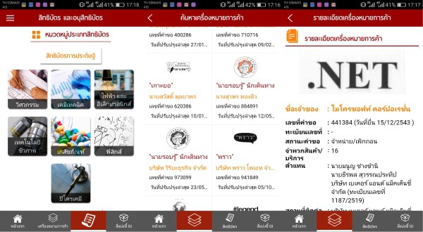 สามารถค้นหาอย่างรวดเร็วโดยการ Search หา หรือแตะที่หมวดหมู่ประเภทเพื่อดู ข้อมูลต่างๆเครื่องหมายการค้าแต่ละแบรนด์ ทรัพย์สินทางปัญญา และ ข้อมูลสิ่งบ่งชี้ทางภูมิศาสตร์ (GI) ด้วย