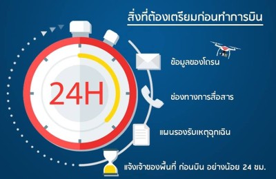 2. ผู้ควบคุมการปฏิบัติของ Drone ต้องส่งข้อมูลปฏิบัติการบินของ Drone พร้อมทั้งช่องทางการติดต่อสื่อสารทั้งหลักและสำรอง เช่น วิทยุมือถือ,โทรศัพท์มือถือ เป็นต้น ให้หน่วยควบคุมจราจรทางอากาศ ณ สนามบินเจ้าของพื้นที่ทราบก่อนปฏิบัติการบินล่วงหน้าอย่างน้อย 24 ชั่วโมง ทั้งนี้ ผู้ควบคุมการปฏิบัติของ Drone ต้องมีแผนรองรับเหตุฉุกเฉิน รวมถึง ขั้นตอนการปฏิบัติเมื่อเกิดเหตุสูญเสียการรับ-ส่งสัญญาณ ซึ่งผู้ควบคุมการปฏิบัติของ Drone ต้องชี้แจงรายละเอียดขั้นตอนการปฏิบัติฯ ให้หน่วยควบคุมจราจรทางอากาศเข้าใจขั้นตอนการปฏิบัติทั้งหมด
