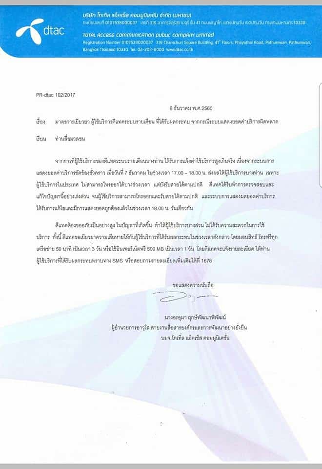 ทั้งนี้ต้องรอติดตามแถลงชี้แจงจากทาง dtac ต่อไป ซึ่งขณะนี้ลูกค้า dtac รายเดือนบางรายสามารถโทรออกได้ตามปกติแล้ว