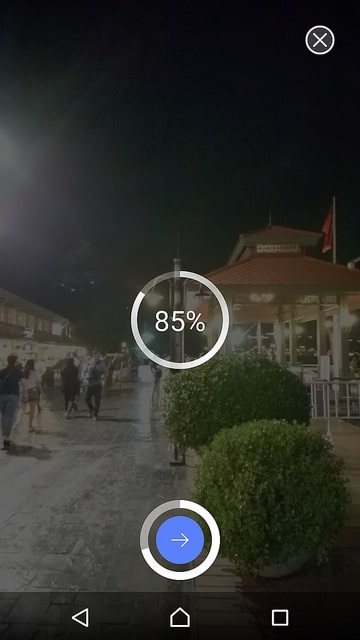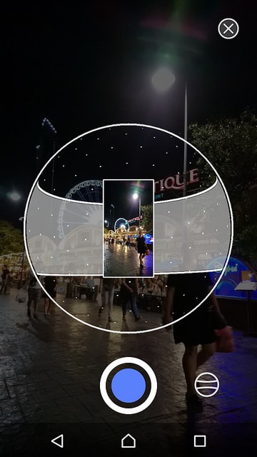ยืนตำแหน่งมุมที่จะถ่ายรูป จากนั้นกดปุ่มฟ้าเพื่อเริ่มถ่าย แล้วค่อยๆหมุนตัวไปทางขวารอบๆ สัก 180 องศาแล้วกดหยุดถ่าย หรือหันขวารอบตัวแบบครบ 360 องศาไปเลยก็ได้