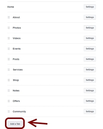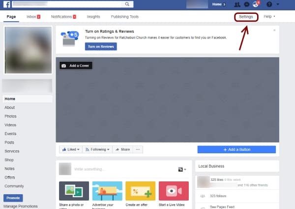 หรือไม่ถ้าไม่มีให้ทำการเพิ่มแท็บ Group ในเพจดังนี้ เริ่มจาก เข้าไปที่ Settings ของเพจที่คุณสร้างขึ้นเองอยู่แล้ว ซึ่งอยู่บริเวณขวาบนของเพจ