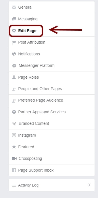 จากนั้นเลือกที่ Edit Page ที่ปรากฎด้านซ้ายมือของหน้า Settings