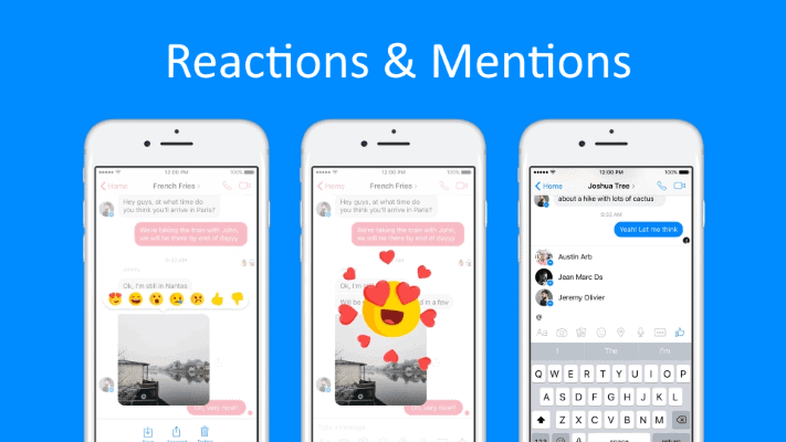 จากที่ข่าวก่อนหน้านี้มีภาพการทดสอบฟีเจอร์ใหม่ของแอป Facebook Messenger เตรียมตัวเปิดตัวปุ่ม Dislike ก็มาจากฟีเจอร์ reaction บน Messenger เอง แล้วในที่สุด ฟีเจอร์ facebook Messenger ก็ได้ปล่อยฟีเจอร์ใหม่ Reaction และ Mensions ออกมาให้ใช้แล้วเริ่มวันนี้