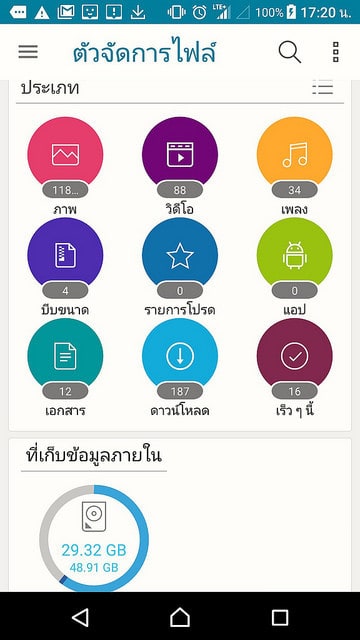 เมื่อเปิดหน้าแรกและอนุญาตเข้าถึงตัวไฟล์บนเครื่องแล้ว ก็จะแสดงจำนวนไฟล์ภาพ วีดีโอ เพลง เอกสาร และไฟล์ที่มีการ zipfile และอื่นๆแบ่งเป็นประเภทต่างๆเรียบร้อย พร้อมกราฟที่เก็บข้อมูลภายใน
