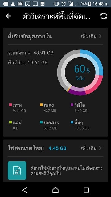 สามารถวิเคราะห์พื้นที่จัดเก็บไฟล์ภายในมือถือว่า มีไฟล์ใหญ่ในเครื่องนี้เท่าไหร่ มีพื้่นที่ว่างและใช้ไปเท่าไหร่ แสดงเป็นกราฟ อย่างอื่นก็มีเลือกโฟลเดอร์หรือไฟล์เพื่อบีบอัดไฟล์เป็นไฟล์ Zip และ RAR บนมือถือได้