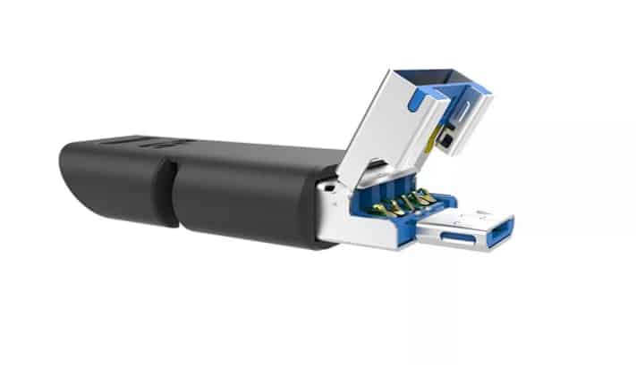หากพูดถึง Flash Drive หลายท่านก็มี Flash Drive สำหรับเสียบพอร์ต USB กับคอมพิวเตอร์แบบ USB-A แต่ถ้าหากจะเสียบกับมือถือด้วย อาจใช้ Flash Drive แบบ OTG ซึ่งหัวนึงเสียบกับคอม และอีกหัวนึงไว้เสียบกับมือถือ ซึ่งอีกพอร์ตที่ใช้กับมือถือที่ว่าเป็นพอร์ต Micro USB และรุ่นใหม่อาจต้องใช้ Flash Drive OTG แบบเสียบกับมือถือที่ใช้พอร์ตใหม่ USB-C ด้วย แต่คราวนี้มีบริษัทที่ได้เริ่มพัฒนา Flash Drive แบบใหม่ที่ออกแบบใช้เสียบได้ทุกพอร์ต All in One ทั้ง USB-A , USB-C และ Micro USB