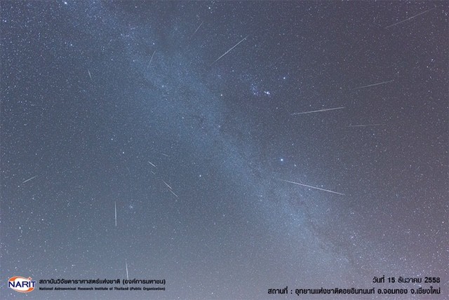ด้านนายศุภฤกษ์ คฤหานนท์ หัวหน้างานบริการวิชาการทางดาราศาสตร์ ผู้เชี่ยวชาญการถ่ายภาพทางดาราศาสตร์ ได้แนะนำเทคนิคการถ่ายภาพฝนดาวตกว่า “แนะนำให้ใช้กล้องที่สามารถถ่ายภาพต่อเนื่องได้ ปรับค่าความไวแสงสูงๆ ตั้งแต่ ISO 1600 ขึ้นไป เพื่อให้กล้องมีความไวแสงในการบันทึกภาพฝนดาวตก ตั้งกล้องบนขาตั้งกล้องที่มั่นคง และใช้เลนส์มุมกว้างเพื่อให้สามารถเก็บภาพท้องฟ้าให้ได้กว้างที่สุด หันหน้ากล้องไปทางทิศตะวันออกเฉียงเหนือ ซึ่งเป็นทิศของศูนย์กลางการกระจายของฝนดาวตก บริเวณกลุ่มดาวคนคู่ซึ่งจะเริ่มโผล่ขึ้นจากขอบฟ้าตั้งแต่เวลาประมาณสองทุ่มครึ่ง ของวันที่ 14 ธันวาคม เป็นต้นไป”