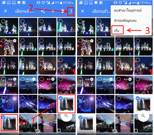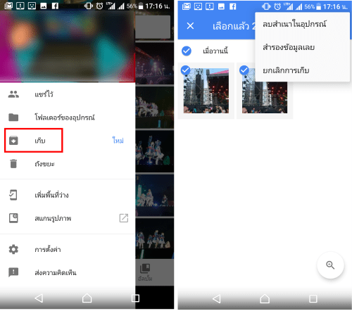 คราวนี้เวลาจะดูภาพที่ซ่อนไว้ ให้เรียกรายการด้านซ้ายมือ แล้วเลือกที่ เก็บ ก็จะพบรูปภาพที่เรา เก็บ หรือซ่อนจาก Google Photos มาอยู่ในส่วนของเก็บ คุณสามารถเลือกที่จะ เลิกเก็บไปอยู่แท็บรูปภาพตามเดิม หรือสั่งลบออกจากเก็บ ได้