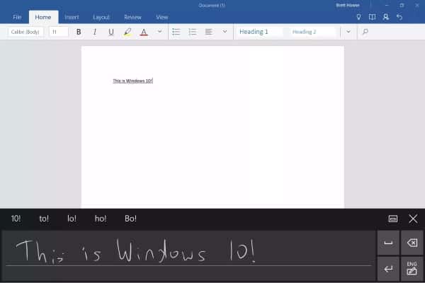 ทั้งนี้ฟีเจอร์การเขียนด้วยลายมือแทนคีย์บอร์ด ใช้ได้สำหรับคอมพิวเตอร์ โน้ตบุ๊ค และแท็บเล็ต Windows10 ที่เป็นจอสัมผัสเท่านั้น
